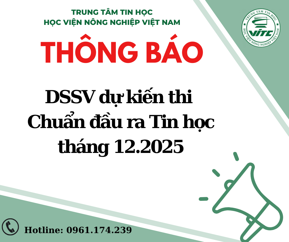 Trung tâm Tin học Học viện Nông nghiệp Việt Nam thông báo khai giảng các lớp bồi dưỡng về Chuẩn đầu ra Tin học trong tháng 11 năm 2024 như sau:
