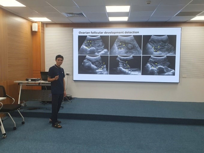 Tiếp nối chủ đề của PGS.TS. Đỗ Đức Lực, ThS. Nguyễn Văn Hoàng giới thiệu về “Một số ứng dụng của AI trên ảnh siêu âm ở lợn giống” đóng vai trò như một bài tổng quan về các giải pháp công nghệ có thể triển khai trên một lớp bài toán cụ thể mà PGS.TS. Đỗ Đức Lực đã đưa ra.