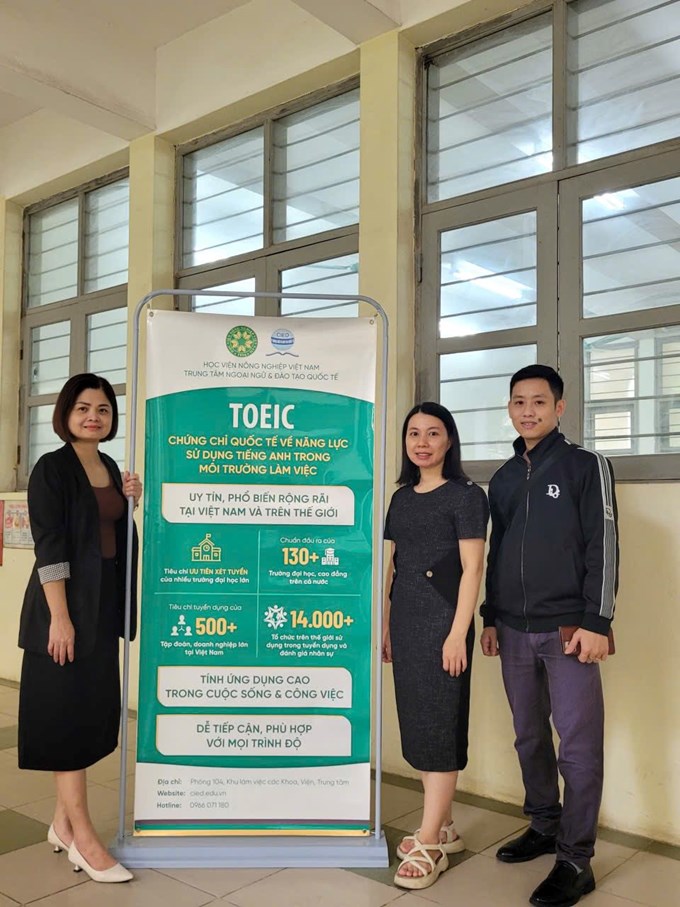 Ngày 09/11/2025, tại Học viện Nông nghiệp Việt Nam (VNUA), Trung tâm Ngoại ngữ và Đào tạo quốc tế đã phối hợp với đơn vị khảo thí được ủy quyền bởi ETS – Tổ chức khảo thí hàng đầu Hoa Kỳ – tổ chức kỳ thi TOEIC quốc tế đầu tiên tại Học viện. Sự kiện đánh dấu mốc quan trọng khi Học viện chính thức trở thành một trong những địa điểm khảo thí TOEIC được công nhận tại khu vực phía Bắc.