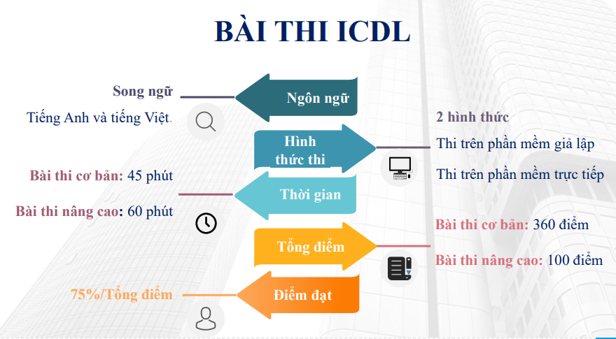 Chứng chỉ ICDL: là chứng chỉ đánh giá và công nhận kỹ năng công nghệ thông tin theo chuẩn quốc tế.