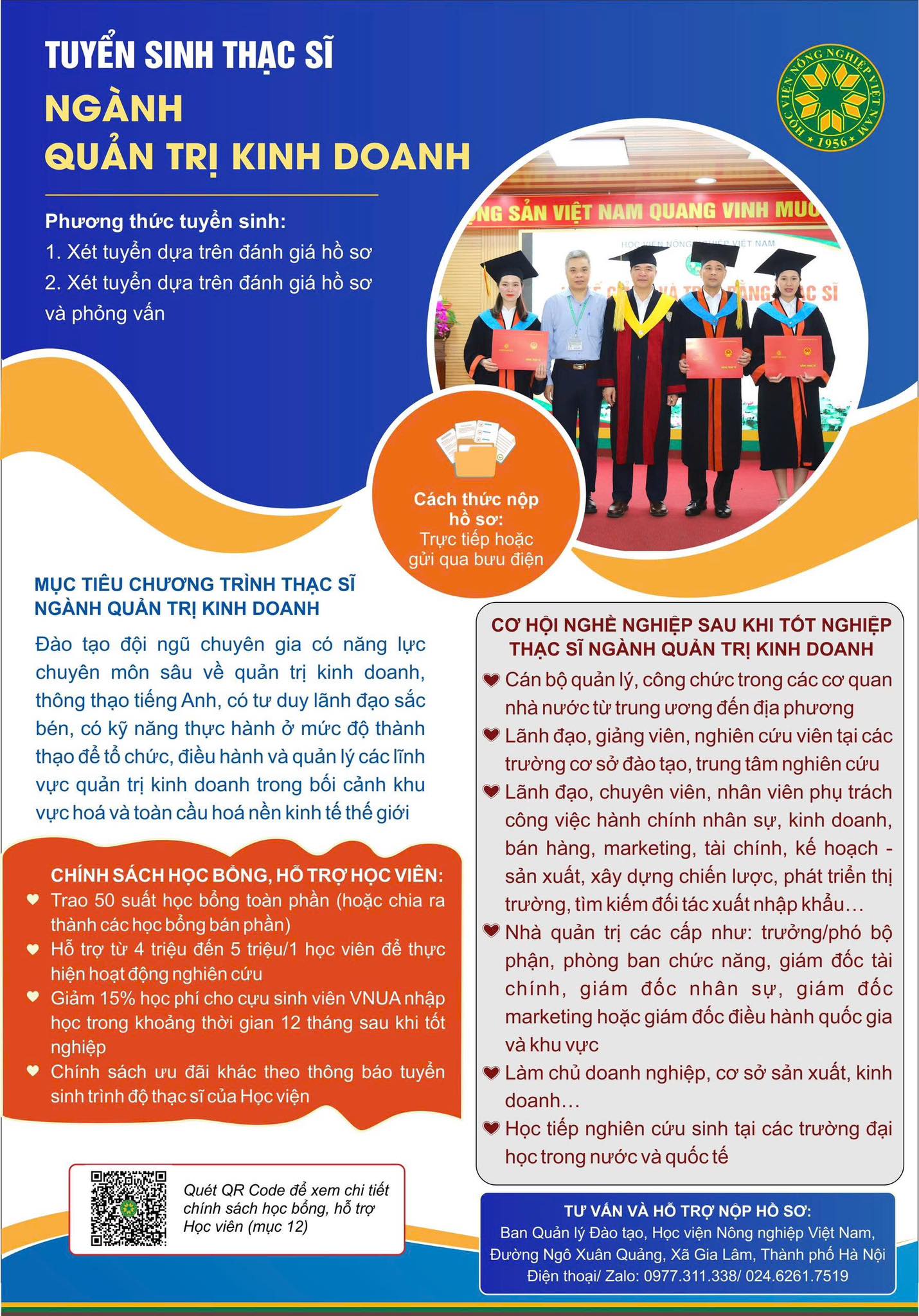TUYỂN SINH TRÌNH ĐỘ THẠC SĨ NGÀNH QUẢN TRỊ KINH DOANH