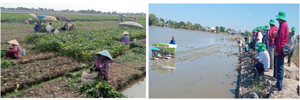 Tại hợp tác xã VinaCam và hợp tác xã Sơn Hoà tỉnh An Giang, người lao động tác các xã Mỹ Thuận, Óc Eo, Ô Lâm và Tri Tôn được học tập mô hình luân canh 1 vụ đậu nành - 2 vụ lúa và mô hình chuyên canh cây đậu nành với sự hợp tác của doanh nghiệp Việt Nam, đối tác Nhật Bản mang lại hiệu quả kinh tế cao, giúp hợp tác xã và nông dân ổn định thu nhập, cải thiện độ màu mỡ của đất và thích ứng tốt với tình hình biến đổi khí hậu, mặn xâm nhập. Kiến thức, kỹ năng về quy trình vận hành máy gieo xạ lúa, máy cấy, máy làm cỏ tự động, máy băm rơm và cách quản lý dịch hại tổng hợp theo tiêu chuẩn VietGAP cũng như công nghệ mới trong sản xuất lúa, đậu do lãnh đạo các hợp tác xã trao đổi tại hội trường và trên các cánh đồng, bên các giàn máy móc, công nghệ đã giúp nông dân các vùng khó khăn nâng cao nhận thức và có thêm động lực đổi mới sản xuất.