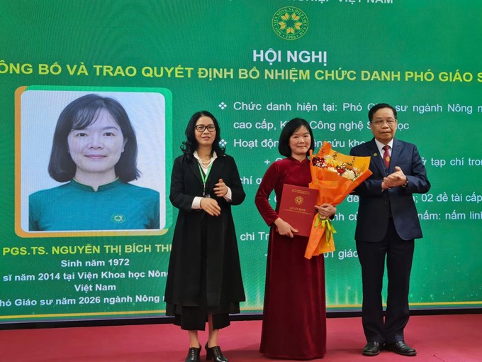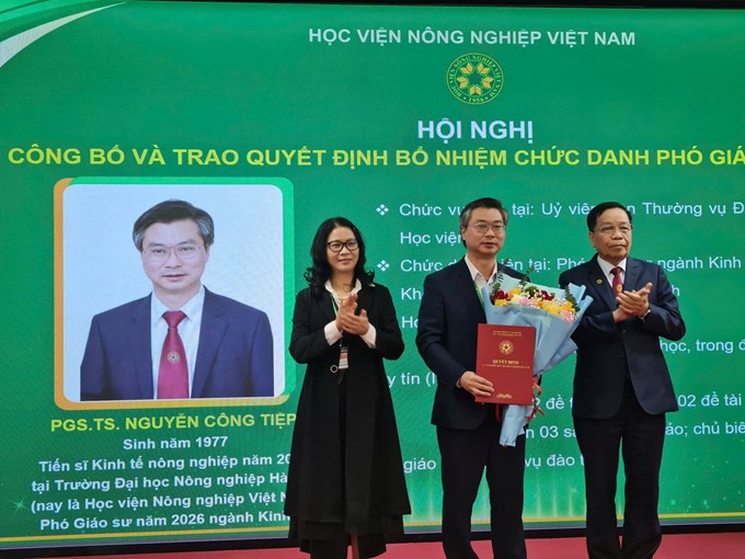 Chiều 23/1, Học viện Nông nghiệp Việt Nam tổ chức Hội nghị công bố và trao quyết định bổ nhiệm chức danh phó giáo sư năm 2026 cho 17 cán bộ, giảng viên. Tại đây, GS.TS.NGƯT Nguyễn Thị Lan, Giám đốc Học viện Nông nghiệp Việt Nam bày tỏ kỳ vọng, mỗi phó giáo sư mới được bổ nhiệm là một trụ cột chuyên môn, dẫn dắt học thuật và là hạt nhân quan trọng trong đào tạo, nghiên cứu khoa học và đổi mới sáng tạo của Học viện.